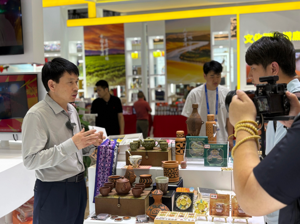 展會期間,董事長王新軍成為了仰韶文化有力的當(dāng)代“代言人”。他精神飽滿,從容應(yīng)對來訪媒體的鏡頭與話筒,向全國乃至世界觀眾講述仰韶彩陶的獨特魅力與深厚底蘊。從企業(yè)如何秉持匠心守護(hù)傳統(tǒng)工藝,到如何通過創(chuàng)新設(shè)計讓古老文物“活”在當(dāng)下。他的講述,讓仰韶文化從塵封的歷史中躍然而出,煥發(fā)出歷久彌新的時代光彩。