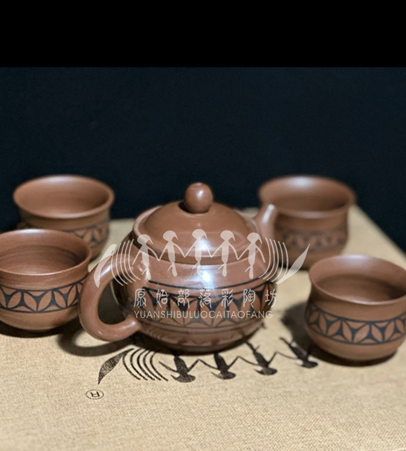 仰韶紅泥茶具花瓣紋高端手工藝茶具