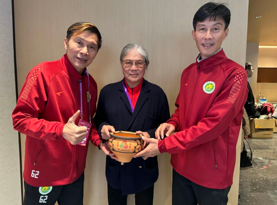 王新軍仰韶文化非遺作品贈霍震霆 “全運花開”彩陶盆傳遞家國情懷