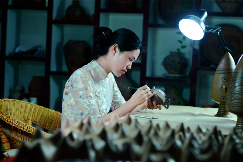 選用優(yōu)質(zhì)陶土,加上一把黃河泥,經(jīng)過(guò)打磨、雕刻、燒制等系列工序后,搖身一變成了一個(gè)古色古香的彩陶。河南仰韶科技開發(fā)有限公司總經(jīng)理、仰韶彩陶傳承人劉新安說(shuō),“我們?nèi)慷际侨斯ぶ铺?,秘法作業(yè),滿輪拉坯成型,天然無(wú)機(jī)顏料彩繪,差不多整個(gè)制作過(guò)程要兩周左右?!?/span>